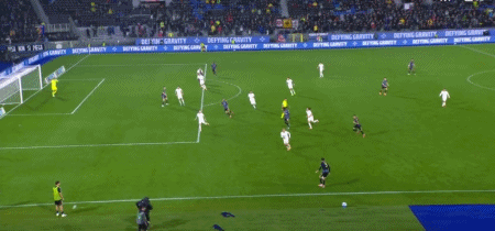第22分钟,中路斜塞,巴希奇禁区左路低射,皮球被门将没收