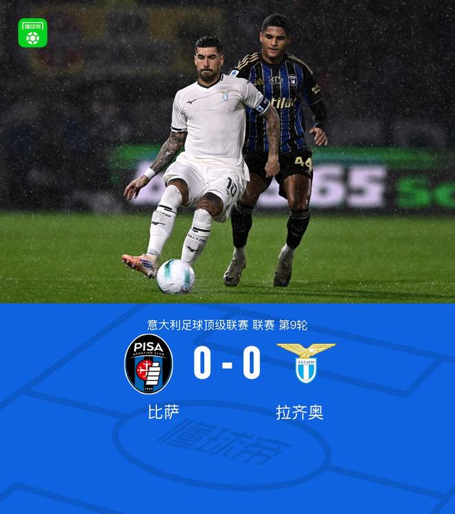 北京时间10月31日意大利足球顶级联赛 联赛 第9轮,比萨主场对阵拉齐奥。最终比分比萨 0-0 拉齐奥。