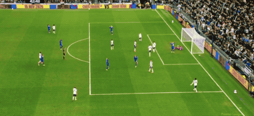 第43分钟,切尔西差点扩大领先优势,古斯托下底传中,佩德罗包抄射门,维卡里奥腾空而起,将球托出横梁。