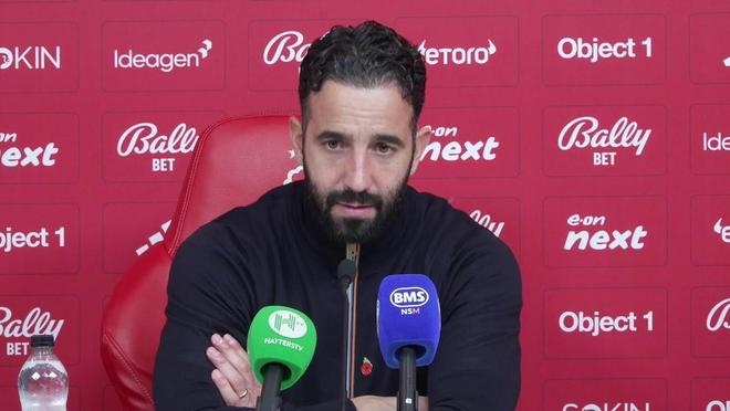 率队在英超第10轮客场2-2战平诺丁汉森林之后,曼联主教练阿莫林出席了新闻发布会。